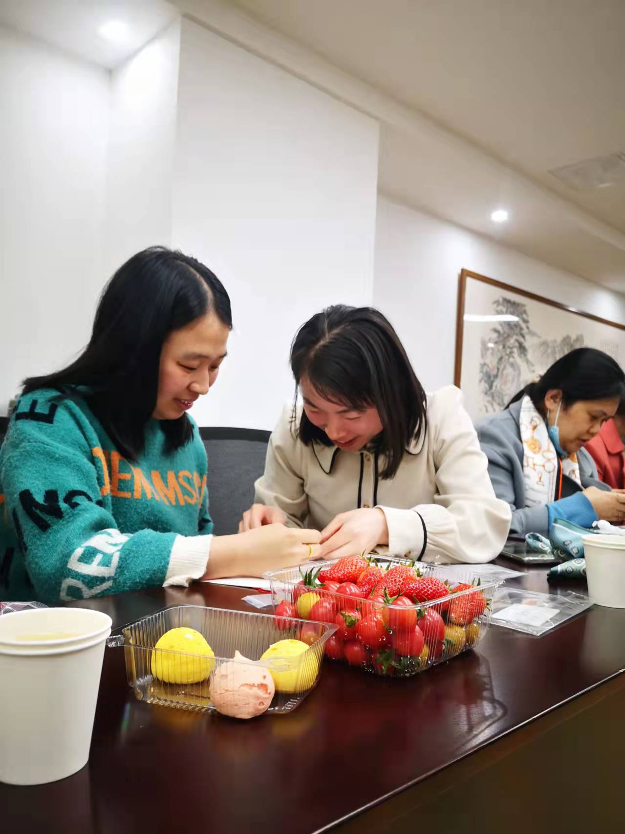 為每位“女神”準(zhǔn)備了繩編工具包、水果、點(diǎn)心、鮮花等,觀看了繩編的完整視頻,在怡然恬靜的氛圍中體驗(yàn)繩編的樂(lè)趣和意境,感受傳統(tǒng)繩編文化的魅力和博大精深。大家認(rèn)真學(xué)習(xí),互相探討交流,用自己靈巧的雙手纏、繞、卷、勾,最終制作出精美的手繩。